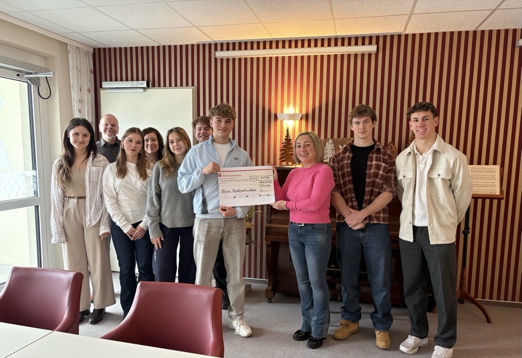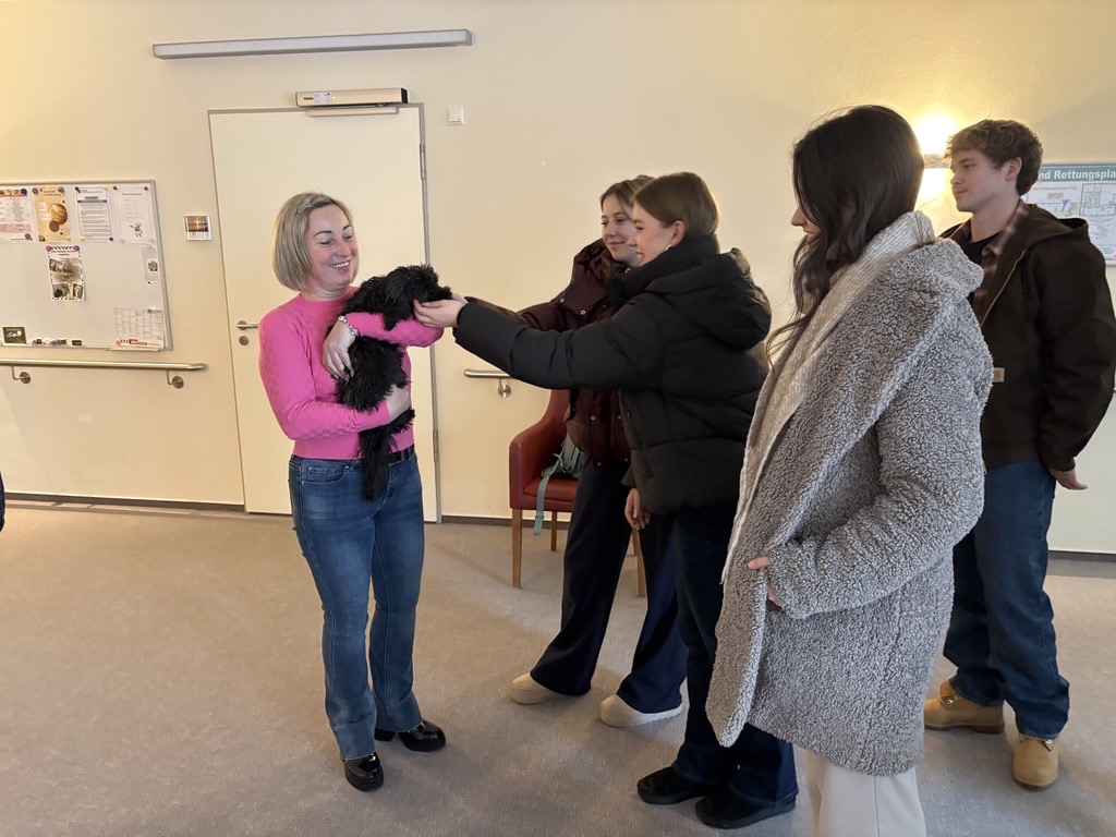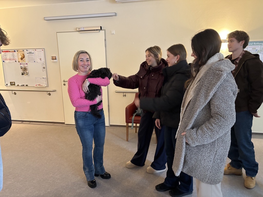 Schülerinnen und Schüler der 12. Klasse übergaben die Spende persönlich und nutzten die Gelegenheit, das Hospiz näher kennenzulernen. Der Besuch bot interessante Einblicke in die tägliche Arbeit der Einrichtung. Besonders der kleine Betreuungshund Charlie sowie das große Engagement der Mitarbeitenden hinterließen einen bleibenden Eindruck.